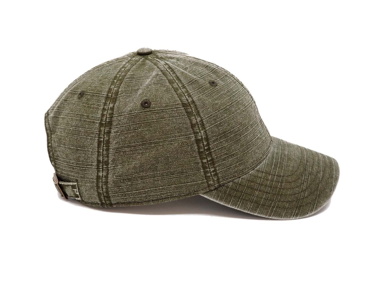 100% bomull, pigmenterat tyg, keps med låg profil. Kepsen är av pappamodell (DAD CAP) och baktill har den ett band i tygrem med mässingsspänne. Ostrukturerad frontpanel och svettband i 100% bomull.